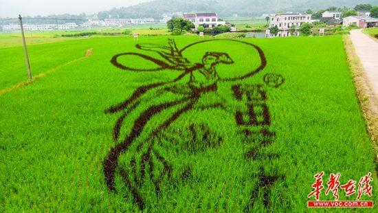稻田里的嫦娥仙子是周先生在宁乡县东湖塘镇西冲山乡陶家湾村拍下的。“史上最拉风”的嫦娥正是出自他所在的农业科技发展公司之手。