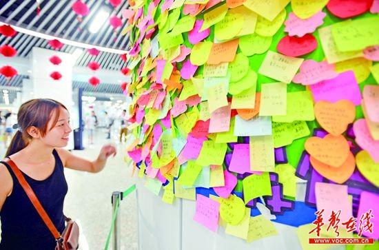 对于征婚启事贴在五一广场地铁站心愿墙上一事,长沙轨道运营公司的人表示,五一广场站是地铁2号线客流量最大的站,心愿墙是为了迎接中秋节和国庆节设置的,本来也是让大家写一些心愿,没想到出现了征婚启事。“我们都希望她女儿这个事能成,成了的话,我们长沙地铁2号线就是媒人嘛!”