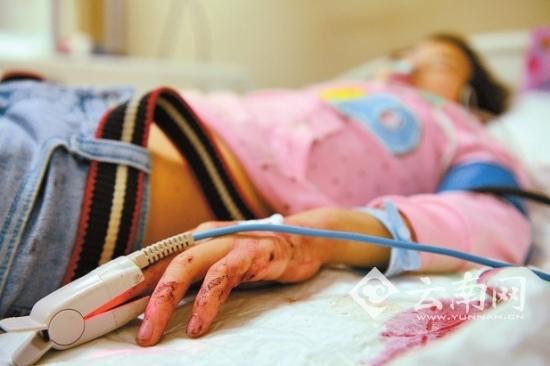 赵先生告诉记者,他们两口子为小云中毒的事吵架,妻子离家出走了。病床上的小云刚从抢救室出来,鼻子上插着氧气管,面色蜡黄。小云衣服领口及裤子上都有血迹。赵先生说:“衣服上这些血都是娃娃发病时流出来的,流血时止都止不住。”小云的主治医生介绍,误服灭鼠药后会引起体内出血,小云的情况比较严重,泌尿系统、腹腔、口腔都有出血症状,凝血功能很差。“还需要进一步检查,如果患者体内一直出血是存在生命危险的。”