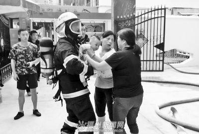 小区突发大火十多人被困 消防员冲入抱出婴儿(图)