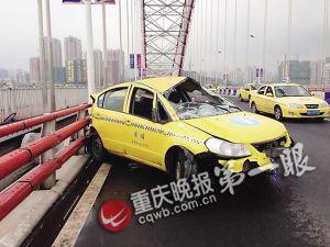 “我想起来,现在脚都还是软的。”罗女士回忆,早上她和老公驾车从西彭来弹子石找同学。行驶至朝天门大桥中段时,一辆出租车撞破大桥中间隔离带,从反方车道飞了过来。她老公连忙驶向最右边车道避让。出租车一路旋转撞上大桥护栏才停下来。