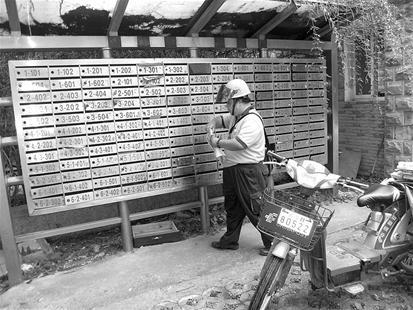 邮递员洪军在投递。因为书信稀少,不少居民的收信箱长期空置。