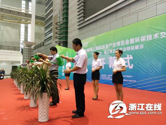 2014浙江环保产业博览会 嘉宾浇水以示开幕。
