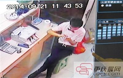 事发时,装有黄金项链的包裹掉落在地上。重庆晨报记者 甘侠义 视频翻拍