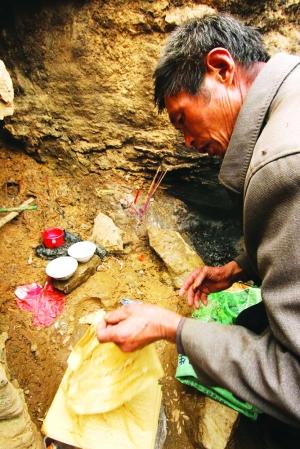 此外,取水点附近,还有人在焚烧香烛、纸钱。有取水者透露,拿到水后还要到几百米外的一户村民家中,请“神医”帮忙。没有经过“神医”烧香求佛的“神水”,没有功效。不过,“神医”对每个取水者要收费5元。