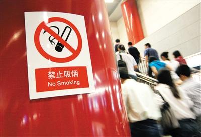 2008年5月1日,地铁5号线雍和宫站设立“禁止吸烟”标志。资料图片