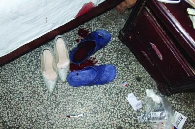 女子割腕时滴下的一摊血。