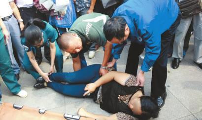 女子广场晕倒被民警发现 目前在医院接受治疗