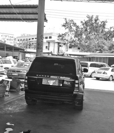 昨日,记者在海口华×修理厂看到了这辆车牌号为琼BT××76 的路虎车。