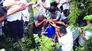 务川丰乐派出所所长代坤说,为赢得时间,民警带领村民,用最原始的办法:村民们找来一个口径1米多宽的大背篼“西南背”,并用几根结实的尼龙绳拴在背篼上,然后,一位村民带着背篼,下至近20米的洞底。