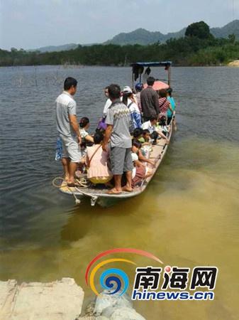 由于桥没修好,当地群众搭乘渡船(当地群众供图)