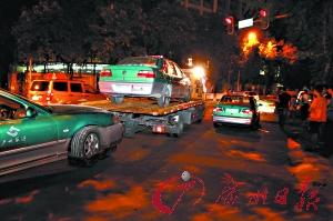 执法人员将查获的克隆的士拖离现场。记者陈安 摄