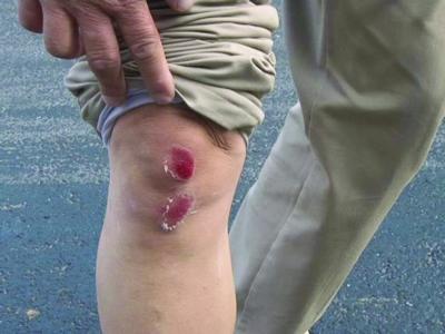 记者7点半左右赶到现场时,看见有两三位已经摔倒的骑车市民在路边上。一名戴鸭舌帽的市民张先生告诉记者,他刚才骑车路过这里,车速并不快,可是因为油污路面根本没有任何警示标志,他没有注意到,转弯时一不小心就摔倒了,膝盖受了伤。市民吴小姐也摔伤了,脸都在地上擦破了皮,丝袜也划破了大洞,膝盖上鲜血直流。目击市民告诉记者,因为是上班早高峰,刚刚在这里摔伤的人非常多,不少人因为赶着上班怕迟到,摔倒后只好自认倒霉拍拍屁股就走了,没有留在现场。