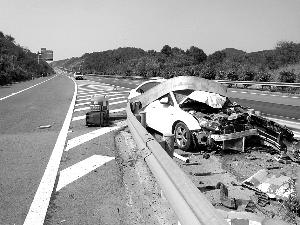司机高速遇超车慌神 误把油门当刹车撞护栏