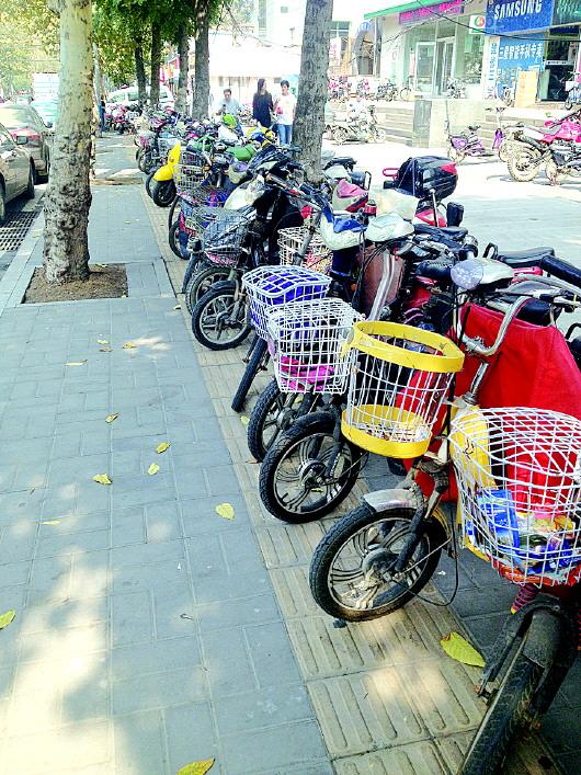山大路上,非机动车占用盲道。 见习记者 范佳 摄