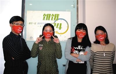 昨日,四名志愿者戴上印有“饥饿24小时活动”图标的口罩,倡议大家体验饥饿活动支持扶贫。 通讯员 金紫南 摄