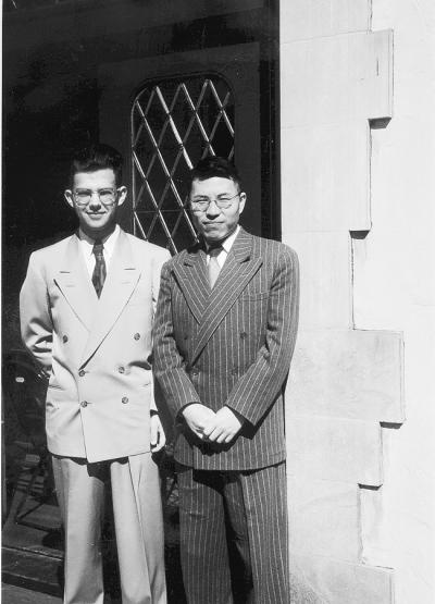 留美期间,刘源张(右)与同学迪安·塔珀在一起。