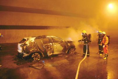 到达现场后,隧道口往嘉陵方向堵车已达到上百辆,现场交警拉起了警戒线,防止车辆人员靠近,同时疏散隧道内滞留的人员。大股浓烟正伴随着火光从隧道内涌出,一辆白色起亚轿车正猛烈燃烧。见状,消防官兵佩戴好空气呼吸器,分两组携带高压水枪向隧道内着火车靠近,从小车车头和小车侧面两个方向进行灭火,很快,火势被控制,隧道险情成功排除。9点40分,隧道恢复通车,被堵车辆鱼贯而出。