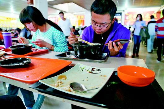 山东工商学院一餐厅50多岁的张师傅介绍,也有个别学生浪费粮食,半碗米饭、面条倒掉的情况也时常发生,“我以前一直在企业做食堂,与企业比,学校食堂的浪费现象比较明显,还得多宣传。”