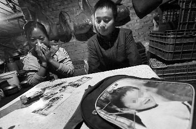 邹先生夫妇则是拿着带有孩子照片的书包,相拥坐在一起,希望能够有人告诉他们是谁撞死了儿子。