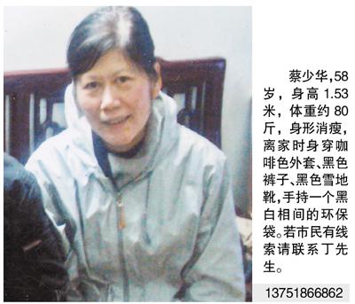 丁先生说,“母亲每天只能睡4个小时,离家出走前的几天,说过自己连一分钟都睡不着。脾气也越来越暴躁,常胡言乱语,说自己得了绝症只剩下几天命了,其实只是一个普通的胃病。”(记者 林静)