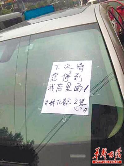 因为店铺门口有块空地,以前也常有车子为了图方便停在门口。端端说,附近的车位并不少,如果大家实在急着办事,“店里面可以停车,可以把车停到里面去”。“停在店门口至少要留个电话号码让人能联系到吧,所以我下午就贴了个纸条提醒他。”(记者 张明阳 实习生 向秋莉 刘文敏)