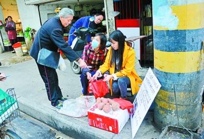 周家母女俩在街头卖红薯,不少爱心人士拿出5元钱拿两个红薯就走。记者杨涛 摄