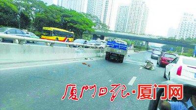 “清洁员挂在路中的隔离护栏上,一条裤腿都是血,看样子是腿断了。”过路的司机说,肇事小货车的车头撞凹了,玻璃碎碴飞溅一二十米的路面。“小货车司机吓坏了,副驾驶座上下来一名男子,说手机撞坏了,请大家帮忙报警叫警察和急救。”这名帮忙报警的司机透露,被撞男子起初挣扎了几下,随即躺在地上,伤势严重,但仍有一些意识。受事故影响,当时往东渡的车道,很快就堵上了。