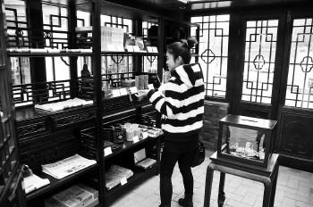 26日上午,记者在孔庙景区东侧看到一间小木屋,装修得颇有古典韵味。青砖配上红木的设计风格很吸引人,再加上门头上写着“曲阜市诚信小木屋”几个大字,路过的行人都会进去瞧一瞧。