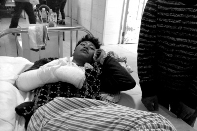 清河999急救中心病床上,日那布被工友包围着。工友们说,他们事发时都在钢筋板上方作业,所以没有受伤。医生表示,日那布腰部受伤,胸以下暂时失去知觉,属于重伤,目前没有生命危险。另一名彝族工人右手小臂骨折,事发时也在钢筋板上方作业,但钢筋突然下落,将其手臂压在钢筋板下。