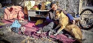 洛阳瀍河区杨文办事处马沟村不远处路口有个修鞋摊儿,摊主下肢瘫痪人称“半截人老马”,只能依靠两个轮子垫在身下“走路”。生活困难的老马却养有宠物——大黄狗,是最普通的土狗,普通得甚至连个名儿都没有,老马“哎”一声,它就跑来了,随时随地。它却是老马的好伙伴儿,不但会给老马看摊儿,天冷还会给老马暖脚,老马用轮子“走路”上坡吃力时,它就在背后使劲用前爪推老马,助他一臂之力。