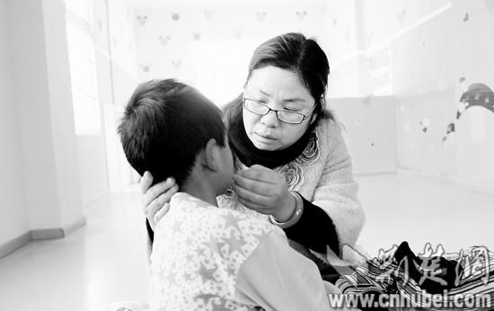 “今天你和杨老师作伴好么?”杨志红给刘杰喂完晚饭,铺好床铺,准备让他睡觉。刘杰此时似乎明白了什么,开始哭闹:“我要妈妈!我要妈妈……”