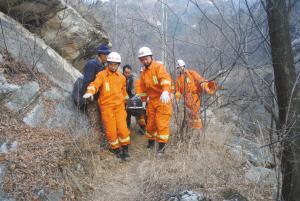 “我们知道冰瀑的位置,在山顶呢,我们带着去找人吧!”面对准备去救人的消防官兵,四名热心村民主动要求给大家带路。没有片刻等待,消防官兵带着救援设备,跟随村民们开始爬山。