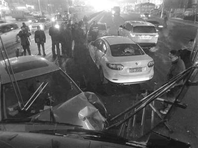 其中一辆被撞车驾驶员扈先生介绍,当时他正在等信号灯,对向车道一辆轿车撞坏几节隔离带冲入车道,依次与4辆车发生剐蹭,直到撞上他的车才停下来。
