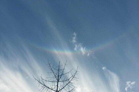 北京现“天空在微笑” 专家称系冰晶云折射太阳光