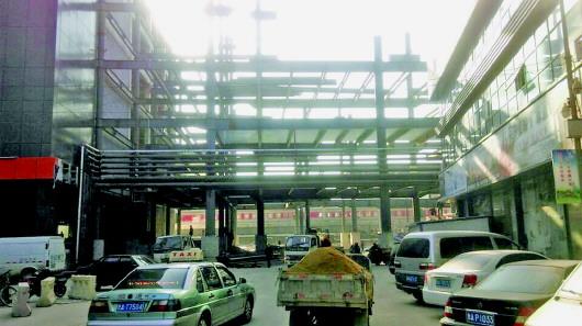 农民工跳楼讨薪的工地是一处三层二十多米高的钢架结构。 见习记者 李阳 摄