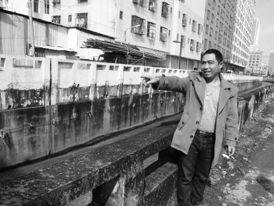 王女士告诉记者,该男子在27日零时许掉进排洪沟中,双腿受伤,然后被困在沟里12个小时。王女士说,道客沟沿岸的栏杆有的地方比较矮,仅50厘米左右,如果不小心很容易掉进沟里。