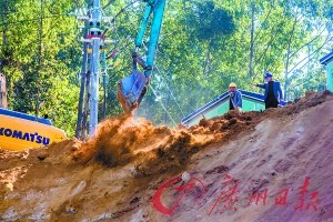 据悉,目前施工方动用了2台长臂挖掘机、1台推土机、8台挖掘机、20台自卸车参与挖掘工作。