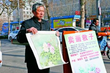 六旬老人济南街头卖画救子 儿子患病仍坚持创作(图)