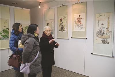 黄佩玉(右一)在介绍自己的画。