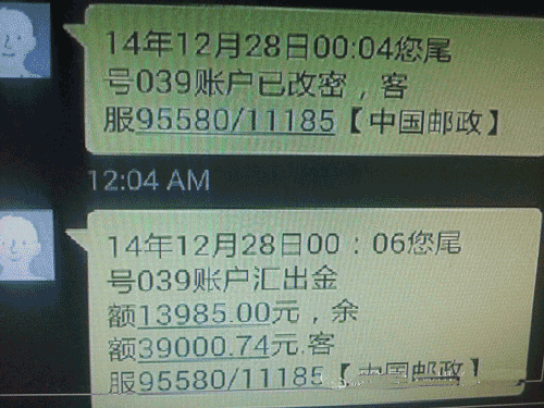 近日有媒体报道,呼和浩特市的张先生和张女士等多名邮政储蓄银行用户卡中的钱出现被盗取的现象。张女士是邮政储蓄银行的用户,一日早晨张女士发现,自己的手机上有8条未读短信,全是邮储银行的短信通知,在凌晨零点左右,自己的卡上5万7千多元,被全部刷走。和张女士遭遇相同的,还有张先生,一觉醒来发现自己银行卡里的钱被人刷走了。