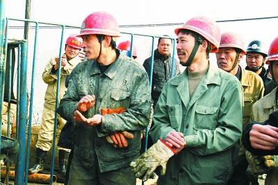 受困矿工被救出矿井后,工友们鼓掌欢呼。