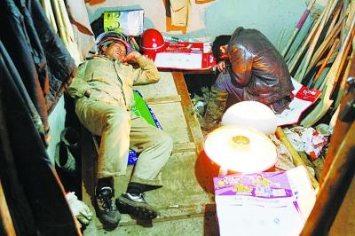 昨天凌晨4点,参与救援的两名矿工疲倦地睡着了。