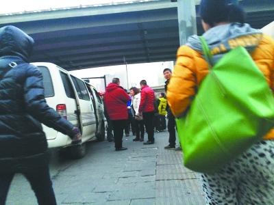 很多路人都在匆匆赶路,并没人理会这些揽客的男子,偶尔会有人停下来询问一下。记者看到有一位女子停下脚步询问,一名男子便凑上前。“去燕郊多少钱?”“15(元)一位,你到哪站下?”“迎宾路那站到吗?”“到,上车吧。”女子上了车。