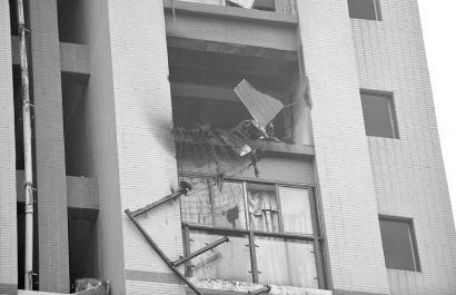 警方在现场拉了警戒线,不准人员靠近。从楼下往上看,起火的17楼阳台已被烧成黑黢黢的,一扇将要坠下的窗杆挂在窗台,摇摇欲坠。而靠近爆炸点的其他住户,十多家的窗户玻璃都被震坏,有的直接掉在了地上。