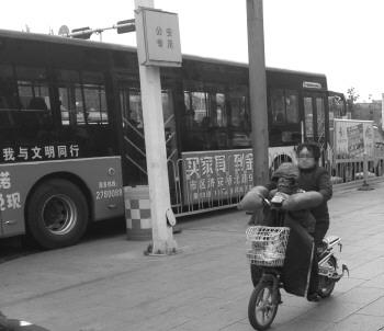 骑电动车带孩子,家长要提高安全意识。记者 孟杰 摄