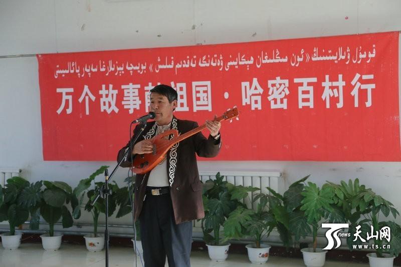 1月14日,“万个故事献祖国 哈密百村行”活动在哈密地区伊吾县前山乡启动。启动仪式上,伊吾县前山乡农牧民表演精彩的“阿肯弹唱”,在冬不拉的伴奏声与祝福中讲述自己的故事、歌唱国家的好政策和如今的幸福生活。“我想把自己的故事讲给别人听,我想把对党的恩情唱给大家听,你们给了我话筒,现在我想说,祝愿祖国繁荣昌盛。”启动仪式上,伊吾县前山乡喀拉乌勒中心村村民胡安别克 卡卡沙弹着冬不拉,用自己的歌声表达了对活动的支持和对祖国的祝福。