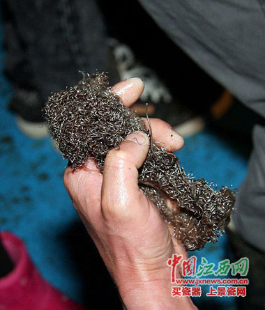 “以前从没遇见过这事,也没任何经验。”南昌市第三医院消化内科主任刘敦菊随后向院领导汇报。院领导非常重视,决定组建特别医疗小组,带上胃肠内窥镜设备出诊,执行特殊医疗任务。刘敦菊告诉记者,11日傍晚抵达新动物园时,只见“迎迎”躺在水池里,不时把头探出水面,发出哀叹声。随后,医疗小组立即制定救援方案,10几位驯养员用特制布兜担架和木槽把海豚固定,用开口器把嘴撑开后,医生缓缓把胃镜插入“迎迎”的食道,看到部分胃黏膜有出血,并发现了一团钢丝球。