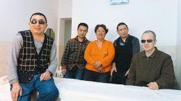 ▲盲人按摩店全家福,从左起依次为老董、小杨、老板陈大姐、老杨和老连