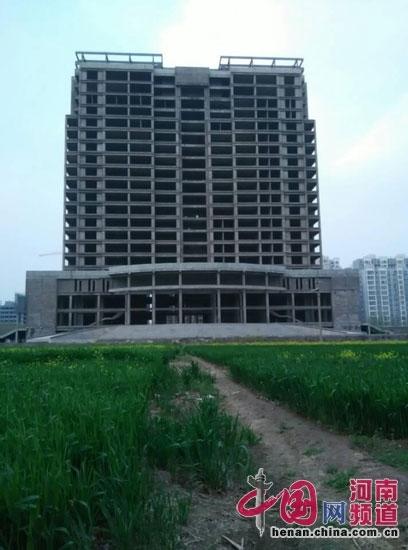 禹州市财政局和地税局联合投资兴建的禹州市财税收付中心21层办公楼,2012年因违反中央禁令被停建。目前已烂尾3年有余,遍地建筑垃圾,楼前的场地又被村民种上了农作物。